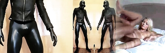 Latex Babe Jerks Off Shiny Plastic Dick