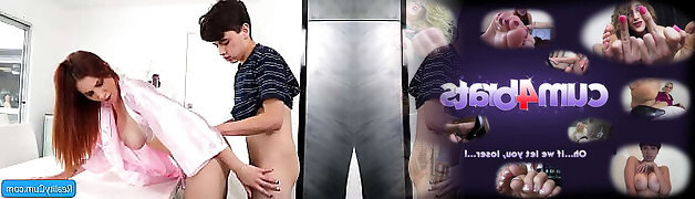 Horny Busty MILF Gets Cum-filled Threesome with Stepson and His Buddy in Lingerie Maid Porn