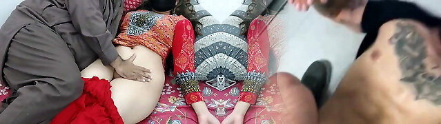 Horny Wife Gets Double Penetrated by Hubby and Hot Maid