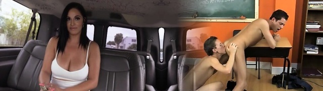 Big tits brunette fucked hard on public bus