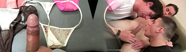 Pantyhose Tranny Creamed: Horny Dudes Stroke Each Other's Cocks!