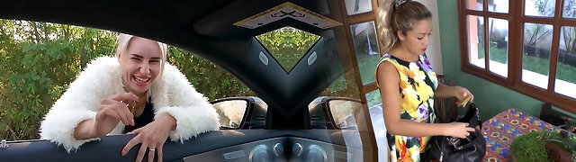 Petite blonde sucks huge cock POV