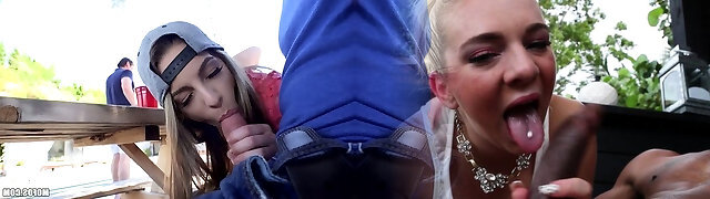 Public blowjob leads to missionary pounding