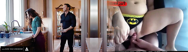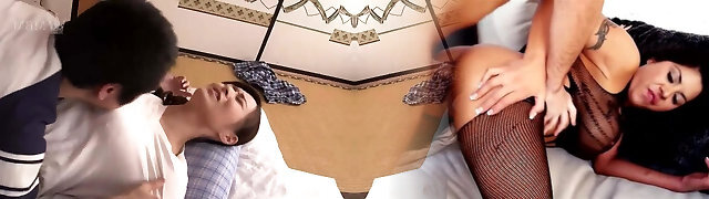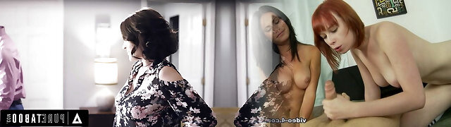 Horny MILF Fucks Stepson's Cock While Busty Babe Sucks His Dick!