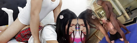 Black Daddy Fucks Asian Schoolgirl's Tight Pussy Hard!