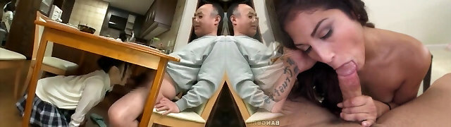 Horny Asian Babe Gives a Blowjob while Getting Creampied