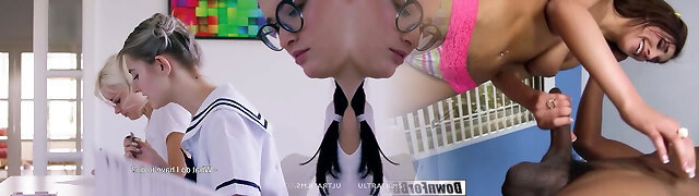 Tits Galore! Eva Elfie and Her Horny Classmates Get Down and Dirty While Studying!
