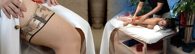 Brunette Babe Gets Double Penetrated in Stockings Porn Scene