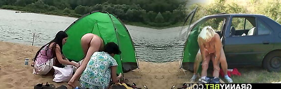 Blonde Beach Bitches Get Fucked Hard Outside Their Tent!