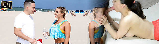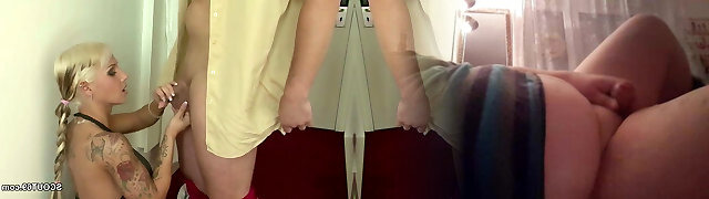 Blonde teen sucks hard cock in HD