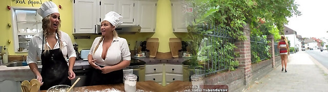Big-Tit Lesbian Fingered in Kitchen Drama